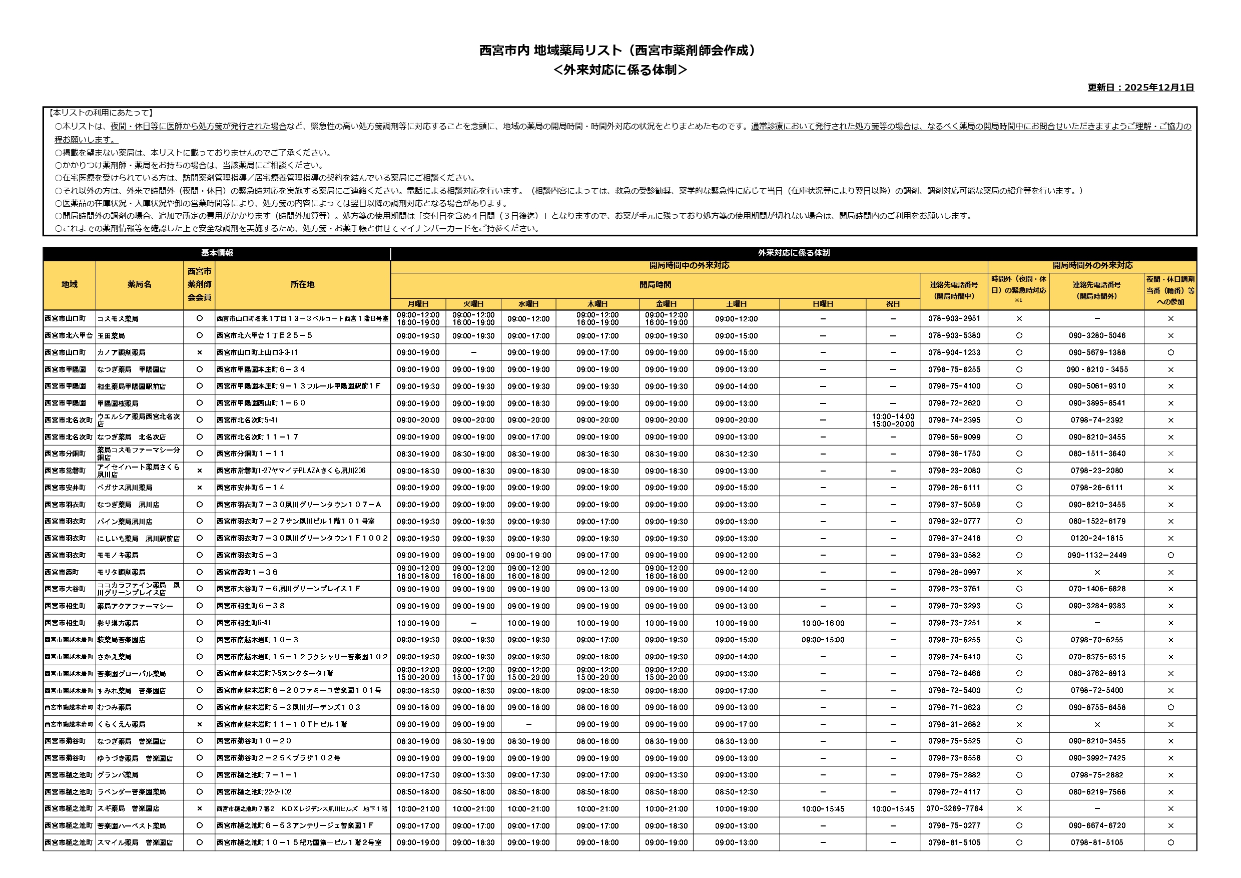 【更新】市内地域薬局リスト【外来対応に係る体制】